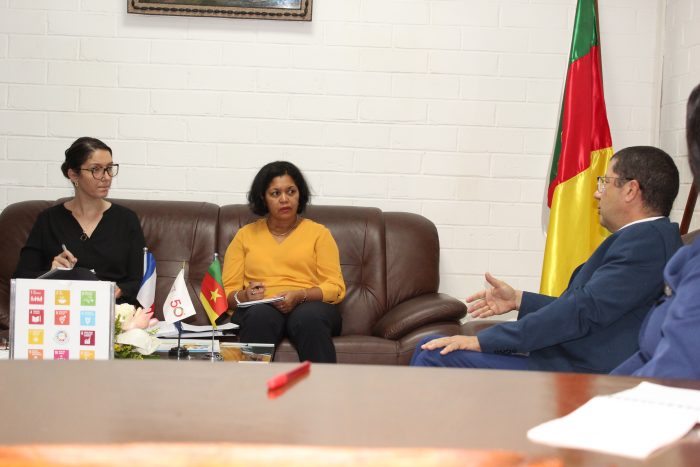 Mme Aubras (au centre) est venue avec Claire Galante Moratti (à gauche), Responsable du pôle Inclusion économique et développement humain de l’AFD au Cameroun