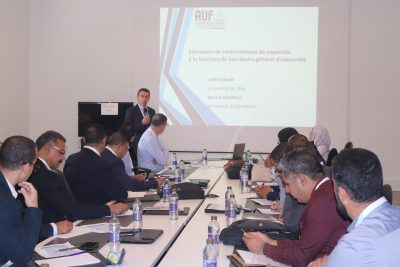 C’est dans ce contexte que s’inscrit cet atelier de formation des secrétaires généraux organisé en partenariat avec l’Association Tunisienne des Secrétaires généraux des établissements de l’enseignement supérieur et de la recherche (ATSG). Animé par deux experts internationaux, Lotfi Sellami, Secrétaire général de l’Université de Sfax (Tunisie) et Benoit Dintilhac, Directeur général des services adjoint en charge du pilotage et de l’aide à la stratégie de l’Université de Bordeaux (France).