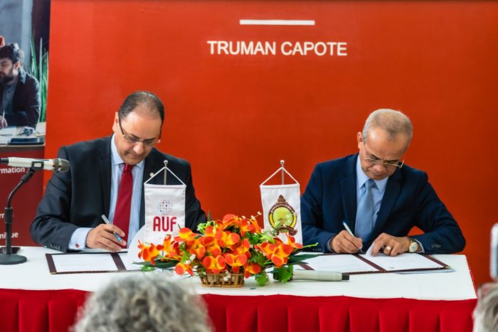 L’après-midi du 10 mars, l’AUF, représentée par son Recteur, Prof Slim Khalbous et l’Université de Battambang, représentée par son Recteur, M. Sok Khorn ont signé la convention d’hébergement du CEF de Battambang. Ce centre sera mis à la disposition non seulement des étudiants de l’Université de Battambang, mais aussi de l’ensemble de la communauté universitaire francophone du Nord-Ouest du pays, dans le but de renforcer l’employabilité et l’insertion professionnelle des jeunes cambodgiens.