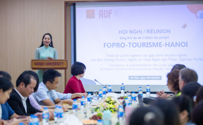 « FOPRO-Tourisme-Hanoï est pour nous un projet exemplaire pour 2 raisons principales : la participation très active des entreprises et l’ouverture vers d’autres universités », a déclaré Mme Nguyen Thi Cuc Phuong, Vice-Rectrice de l’Université de Hanoï.