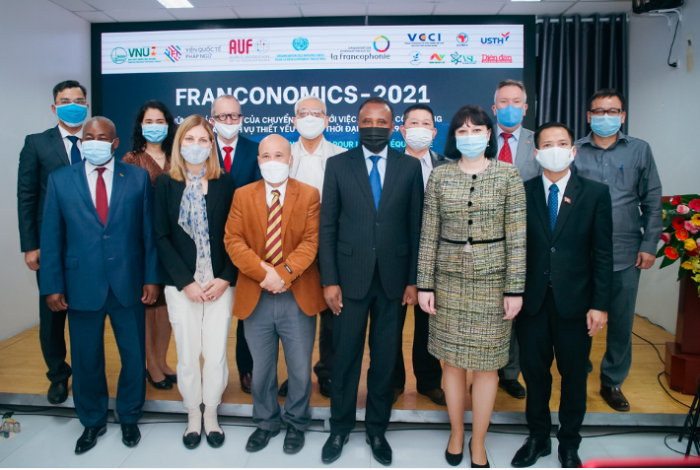 Suite au succès des deux premières éditions, l’Institut francophone international (IFI), sous le parrainage de l’Université Nationale du Vietnam de Hanoi (UNVH), en collaboration avec l’Organisation internationale de la Francophonie (OIF), l’Agence universitaire de la Francophonie (AUF) et l’Organisation des Nations unies pour le développement industriel (ONUDI), a organisé pour la troisième fois le Forum Franconomics 2021. Avec le thème « Enjeux de la transformation digitale pour l’accès équitable aux services essentiels en la période de COVID-19 », l’événement s’est tenu les 24-25 novembre 2021 en présentiel à Hanoi et en ligne par visioconférence. Franconomics III a pour but d‘instaurer un espace francophone annuel d’échanges et de favoriser le développement de la coopération Sud-Sud à l’ère numérique. Il visait aussi à faire un point d’étape sur les enjeux de la transformation digitale pour l’accès équitable aux services essentiels pendant la période de pandémie, dont l’accès à la technologie informatique, aux services éducatifs et les services de l’industrie 4.0.