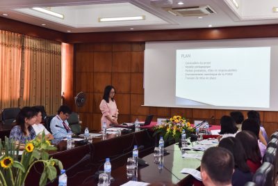 Suite à la cérémonie de signature du partenariat, 30 enseignants venant des six sections de l’École de Langues Étrangères de l’IPH ont participé à l’atelier de « Formation à la Conception, au Développement et à l’Exploitation des cours hybrides » du 26 au 28 aout 2019, dans les locaux de la Médiathèque Tạ Quang Bửu à Hanoi.