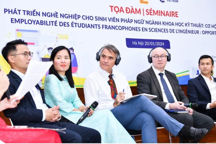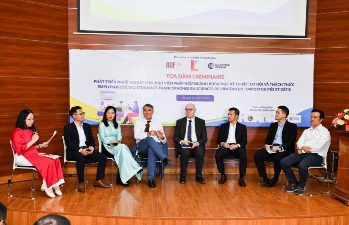 Les enseignants, étudiants et particulièrement les représentants des entreprises francophones au Vietnam se sont réunis le 20 janvier 2024 à l’Université des sciences et technologies de Hanoï (HUST) afin d’échanger des opportunités et défis de l’employabilité des étudiants francophones en sciences de l’ingénieur.