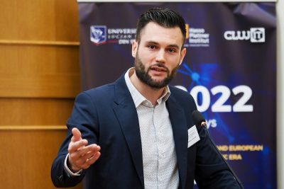 Le Colloque International Universitaire «Lucian Blaga», qui a fêté la XXIVème édition, a fait ses débuts mercredi, le 26 octobre avec une rencontre de bienvenue à Sibiu. Jeudi, le 27 octobre, dans un format hybride, dans Aula Magna « Avram Iancu » de la Faculté des Lettres et Arts de l’Université «Lucian Blaga » l’évènement a commencé par le message du vice-doyen de la Faculté des Lettres et Arts, Maître de conférences, Florin Cosulet qui a retenu l’importance du Colloque dédié aux étudiants et jeunes chercheurs. Jérôme Cochand, lecteur de français à l’ULBS a souligné la valeur ajoutée du partenariat entre ULBS et l’Agence Universitaire de la Francophonie, qui a rendu possible la présence de Jean Poncet, traducteur de l’œuvre de Lucian Blaga en français à Sibiu.