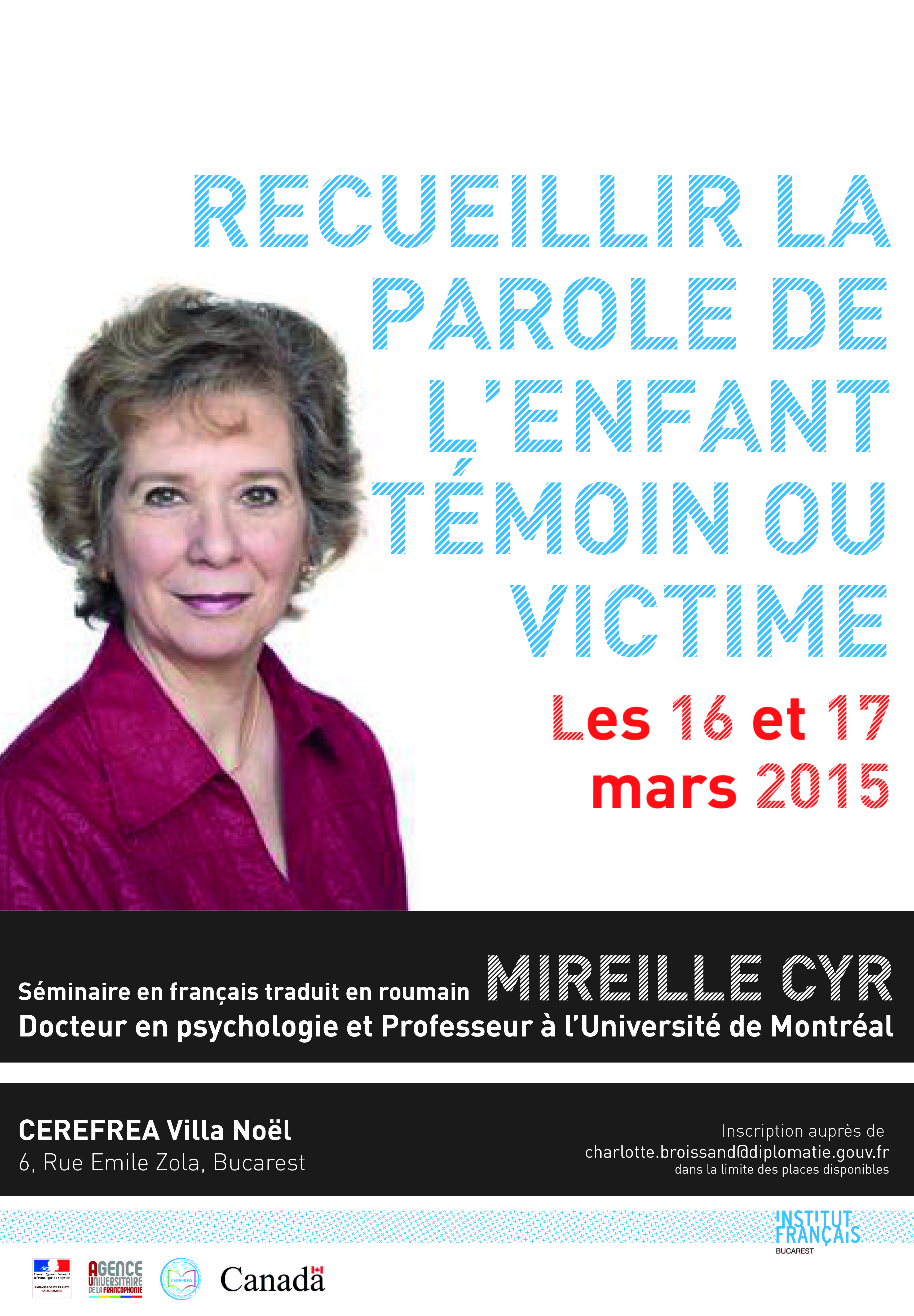 Mireille Cyr à Bucarest pour animer le séminaire de formation autour de la parole de l’enfant en justice