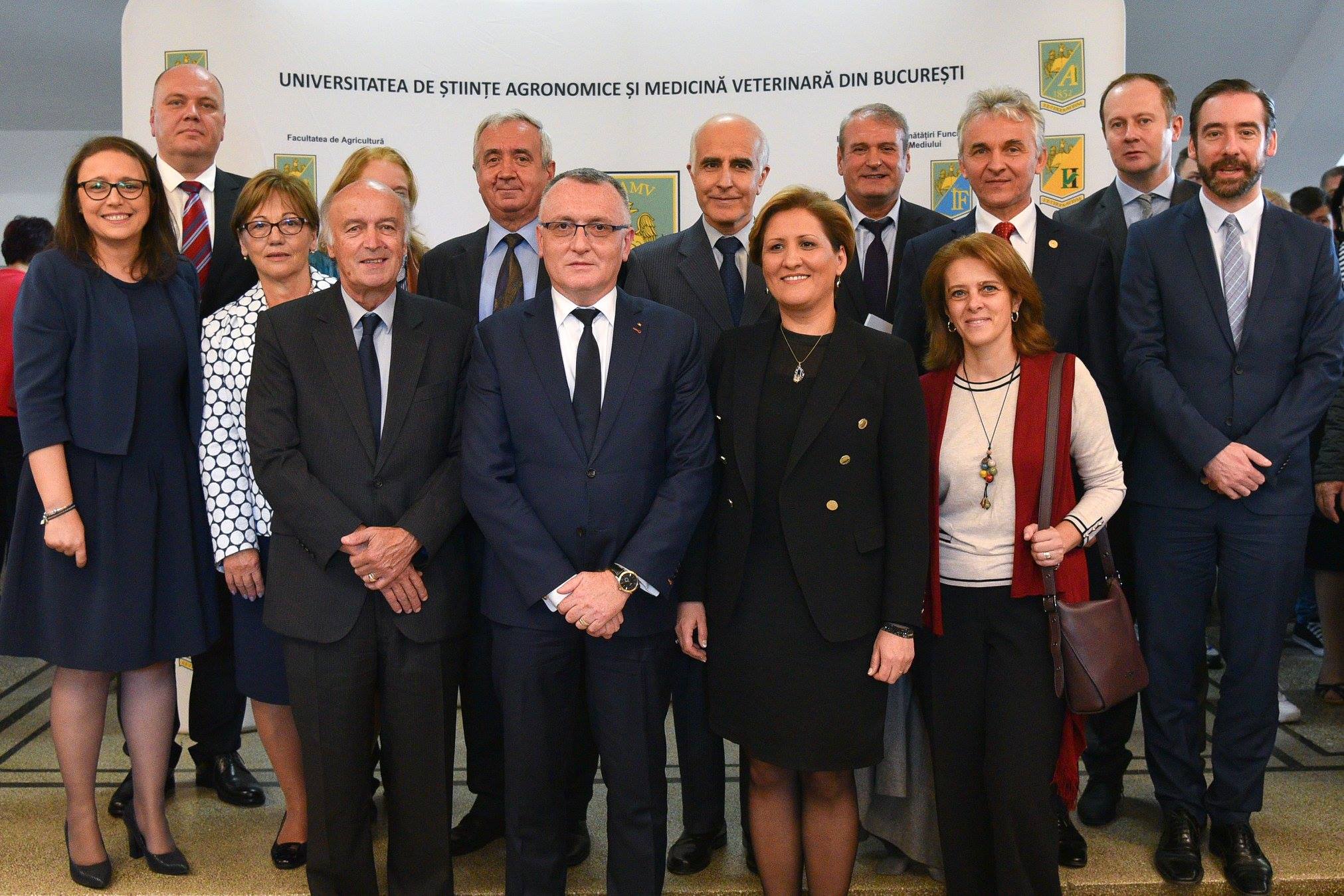 Invité à l’Université des Sciences Agronomiques et de Médecine Vétérinaire (USAMV) de Bucarest, M. de Gaudemar, accompagné du Président de l’AUF, M. Sorin Mihai Cîmpeanu, et du Directeur régional de l’AUF en Europe centrale et orientale (ECO), M. Mohamed Ketata, a participé à la cérémonie d’ouverture de l’année universitaire 2018-2019. Le Recteur a rappelé l’importance de la Roumanie au sein du réseau universitaire de l’AUF avec près de 40 établissements membres et souligné l’engagement du Gouvernement roumain dans les actions de l’AUF en Roumanie.